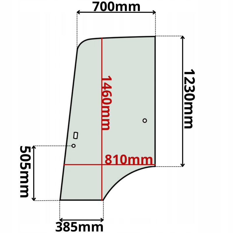 -UWAGA! Odległość pomiędzy otworem klamki a dolną krawędzią szyby wynosi 505mm.