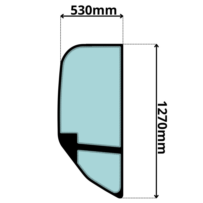 SZYBA LEWA DRZWI GÓRNA CAT (G-0129)-SITODRUK