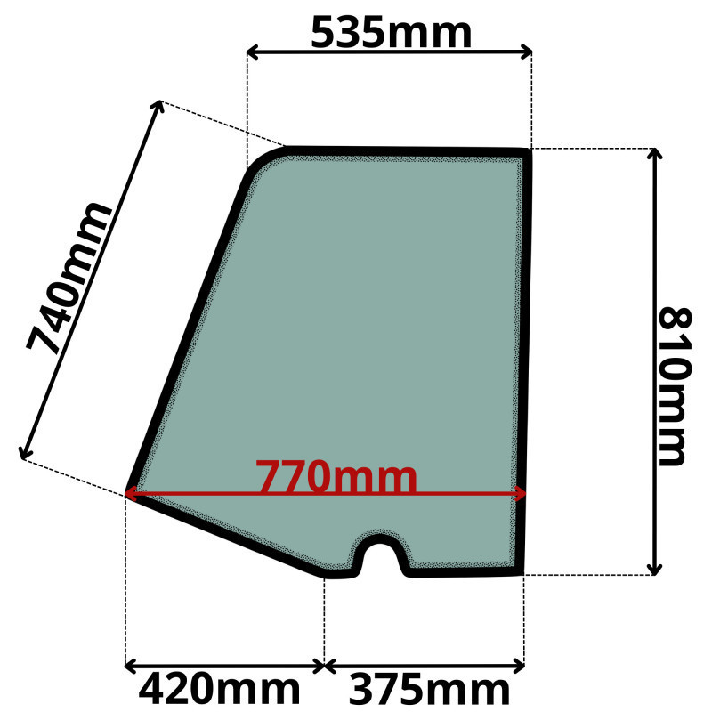 SZYBA BOCZNA LEWA JCB ZA DRZWIAMI (G-0213)