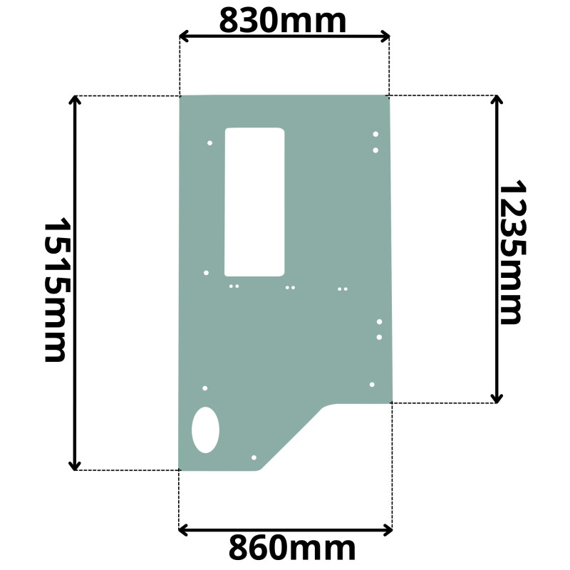 SZYBA LEWA BOCZNA ZA DRZWIAMI JCB 2CX (0502)-SITODRUK