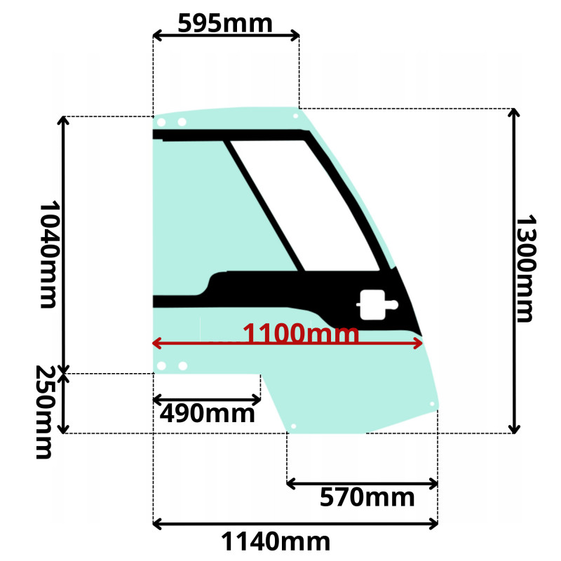 DŁUGOŚĆ OD LEWEJ DOLNEJ KRAWĘDZI DO DOLNEJ ŚRODKOWEJ KRAWĘDZI SZYBY WYNOSI 570mm!