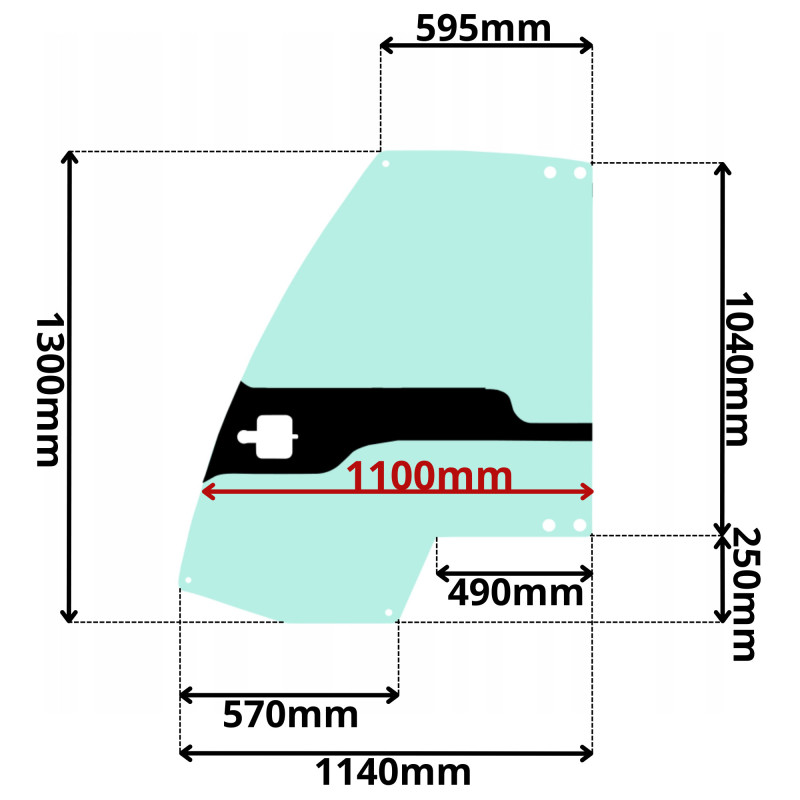 DŁUGOŚĆ OD LEWEJ DOLNEJ KRAWĘDZI DO DOLNEJ ŚRODKOWEJ KRAWĘDZI SZYBY WYNOSI 570mm!